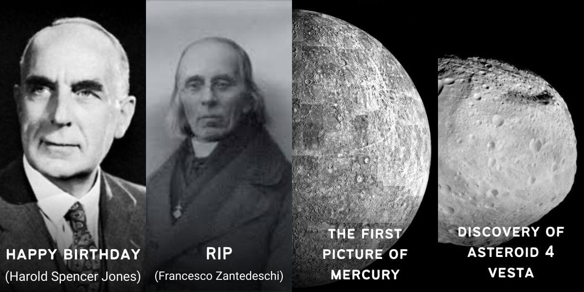 On this day, Mariner 10 took the first picture of Mercury in 1974. It was the first spacecraft to use the gravitational pull of one planet to reach another planet. It was also the first one to use solar wind as a means of locomotion. Mariner 10 found a thin atmosphere and a magnetic field on Mercury.